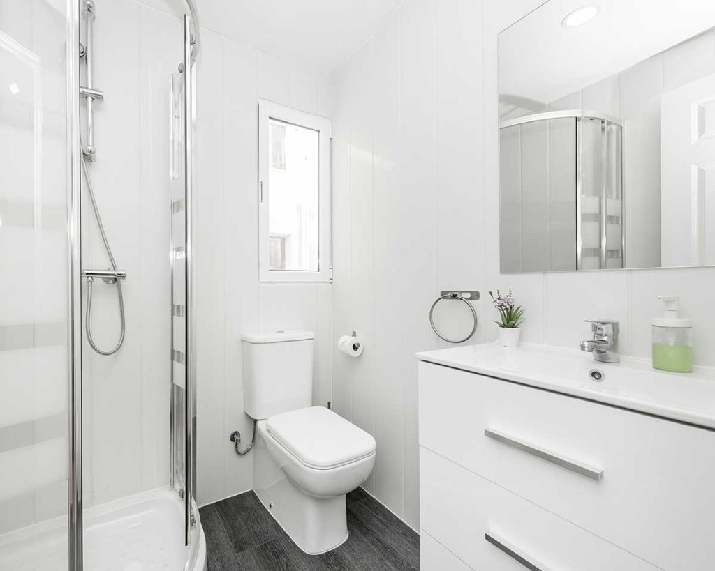 In many of our projects, laminate works well in secondary spaces, rental properties, or budget-focused updates where keeping costs controlled is a priority. We used faux marble laminate countertops in this budget-friendly but beautiful primary bathroom renovation.