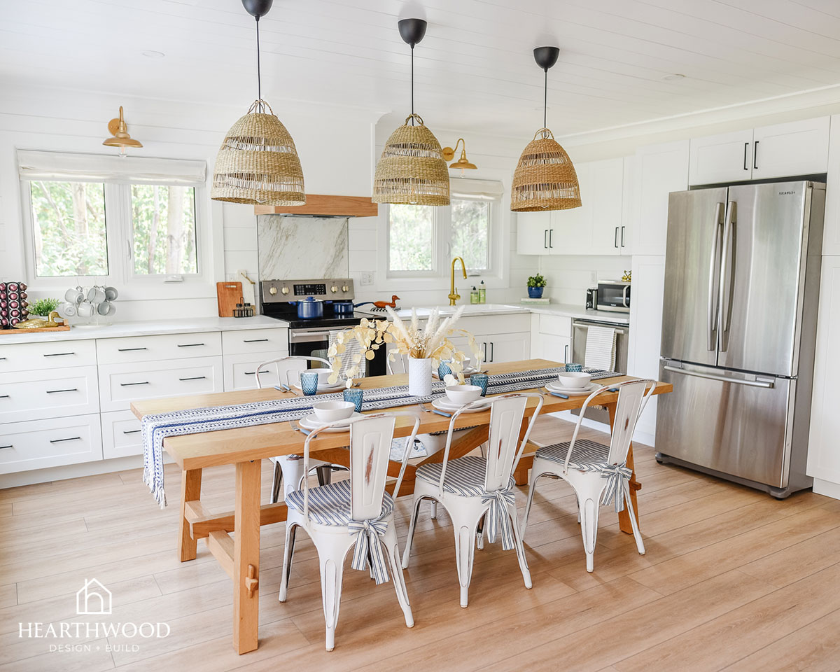 Our clients (in this case, us!) wanted a warm and welcoming kitchen that reflected the laid-back vibe of lake life while being durable enough for frequent vacation rental guests. The goal: timeless, not trendy. Fresh and functional. Simple, but far from boring.